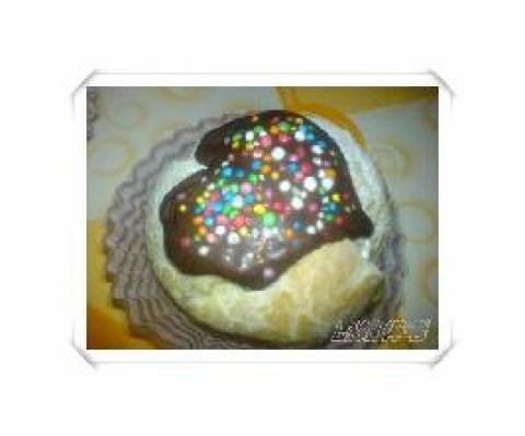 布丁馅:,蛋黄 5 串,细砂糖100克,鹰粟粉 35克,鲜奶375克,黄油50克,泡芙:,水110克,奶油75串,高筋面粉100串,蛋液180串