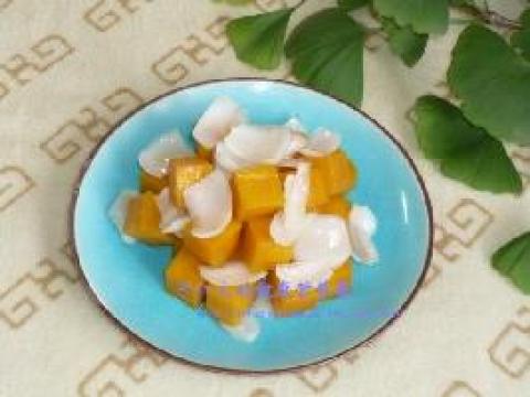 金黄的瓜丁伴以无暇的百合,甜甜蜜蜜、沁人心脾。此佳肴非今日良辰莫属也!敢不称金玉良缘乎?哈哈哈哈....