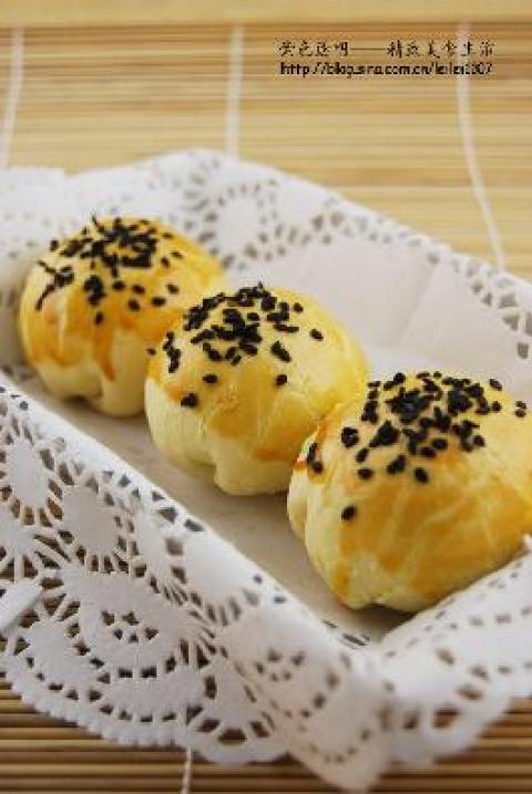 5.表面刷蛋黄液2次,撒上少许黑芝麻点缀,放进预热好的烤箱25分钟上色即可。