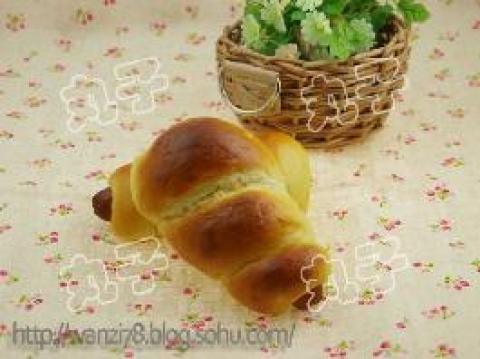 面粉2碗,酵母1/3汤匙,香肠5根,白糖半茶匙
