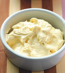 1.将软化的奶油、过筛的糖粉一起放入容器内,用打蛋器打至松发。