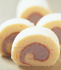 6.入炉烤焙,以上火190℃,下火150℃,烤约20分钟,出炉待凉后,底部抹上柳橙果酱捲起,每5公分切小段状即可。