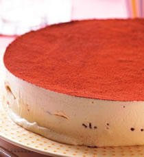 巧克力海绵蛋糕1份,乳酪慕斯馅1150公克,咖啡酒糖液500㏄,无甜可可粉适量
