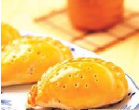 6.所有材料做好后,即可刷上蛋液,再于表面戳洞,放入已预热至200℃的烤箱中,烤约25分钟即可。