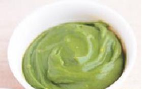 奶油布丁馅250公克,打发鲜奶油150公克,抹茶粉适量,热水适量