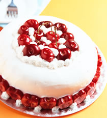 7.最后放上樱桃装饰周围,以挤花做点缀即可。