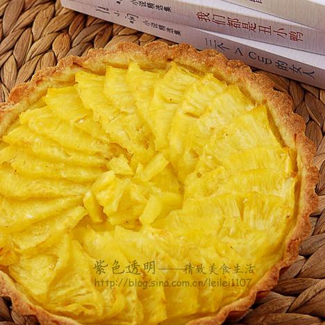 派皮:低筋粉100克,黄油60克,糖粉40克,鸡蛋15克,奶粉2克。,派馅:鲜牛奶90克,百吉福奶酪布丁一盒80克(没有可不放),动物性淡奶油100克,糖40克,蛋黄2个,低筋面粉25克,玉米淀粉25克。,装饰:菠萝,糖水(糖:水=1:2)