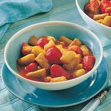 大黄650克,白砂糖60克,新鲜柳橙汁100毫升,草莓250克,点缀:,二次分离稀奶油200毫升