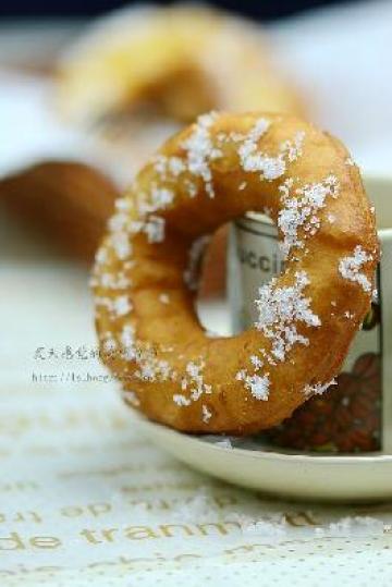 5 油锅到适量的油,加热到大约180度左右,放入甜甜圈炸成金黄。