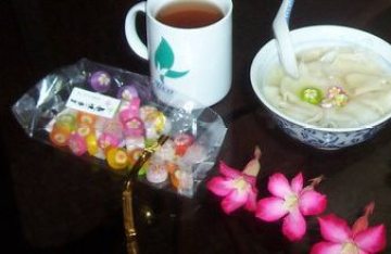 端上桌后放几粒甜甜糖果子用汤匙慢搅拌溶化入味。