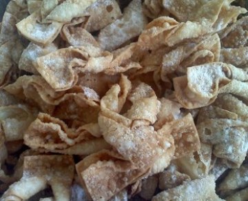 3、上油锅,烧热油后,把蝴蝶结们炸成金黄色捞出,上面撒上糖粉即可。
