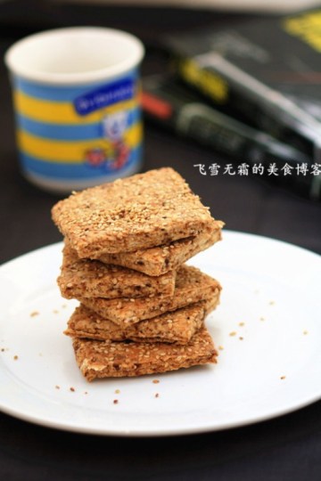 (7)将作法6分切成每个5×5公分的大小,以牙签戳洞后,放入烤盘内以100℃烤约40分钟。