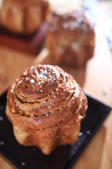 10.面团发酵好后,表面刷上蛋液洒上珍珠糖