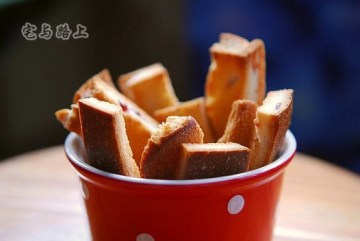 4.送入预热好160度的烤箱,烤约20分钟至面包干焦黄酥脆
