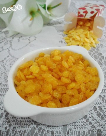 1、锅内放少许冷水,放糖,炒出糖色后,放玉米片进去~翻炒均匀后盛出;