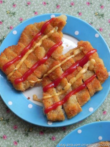 主料:猪扒,,玉米淀粉,鸡蛋,面包糠,番茄酱,千岛酱