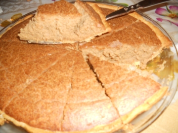 6、派皮攤開在派盤,注入混好欣芋䊢。lay pie crust on bake dish.