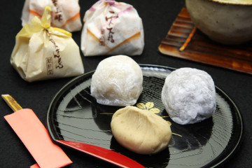 3.食用时取出切块、排盘;将动物性鲜奶油打发,加入100g的细砂糖调匀,装入挤花带中挤出小花在冻糕上,再以樱桃装饰即可。
