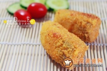 1. 香蕉各切成三段,用白糖腌制5小时。 2. 将饼干用擀面杖擀成粉末。 3. 把鸡蛋搅匀放入少量牛奶。 4. 将色拉油倒入锅中,当温度达到高温时,将腌制好的香蕉蘸上之前的牛奶鸡蛋液中,再裹上饼干末,放入锅中,当香蕉呈现金黄色时,便可出锅,这样就做好了 有奶香的味道,很诱人哦!宝贝们,注意千万别烫手哦! 注意:不可以将香蕉一次性都放进锅里,这样会糊掉的哦,记得要边蘸,边炸哦!亲!