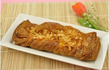 其次,将醒发好的面团取出,进行压面工作,刷油,撒料,口味料主要有:五香,椒盐,麻辣,甜味,原味等。再一次压过之后,即可以成形,刷油,发酵。