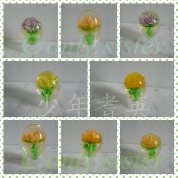 3 ) 將餘下啫喱水倒入另一蛋殼.將有花嘅蛋殼合埋一齊.