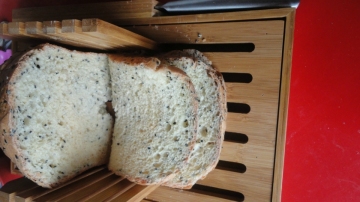 4、一个和面程序结束后,加入黄油,选择英式和风程序,一键式操作即可,在提示加果料时放入芝麻,静待火龙果皮吐司出炉。
