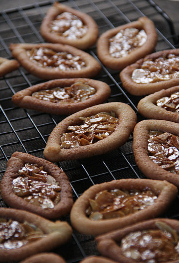黄油 75克,糖粉70克,盐2克,蛋白50克,低粉150克,杏仁片60克,黄油40克,糖45克,麦芽糖45克