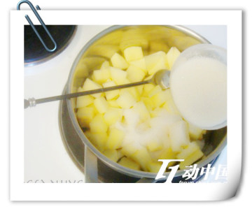 馅:苹果400(去皮去核,切成中块), 白糖50克, 水20毫升。