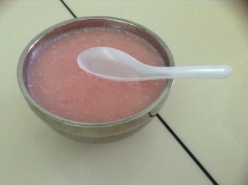 吉利粉加1/2 杯冰水使其溶解,放到微波炉加热约30秒后取出搅拌均匀;