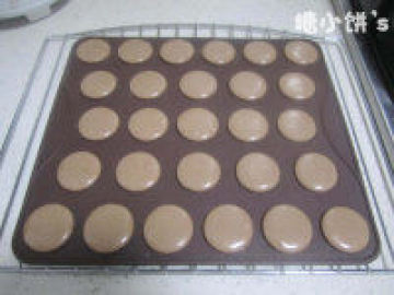 12、马卡龙完全冷却后会很好取下来~取下来之后加入内馅即可~不要热的时候就急着拿~容易把底沾掉。同样的面糊~硅胶垫做出来的裙边就不如油布做出来的整齐~原因不明~