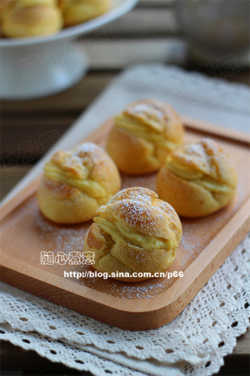 4、泡芙的馅料要现吃现挤,否则馅料中的水分会使泡芙变软不酥脆。