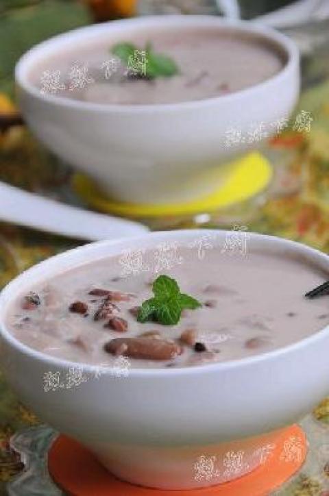 3.把煮好豆类连汤带水一起加进去,再加入椰浆。
