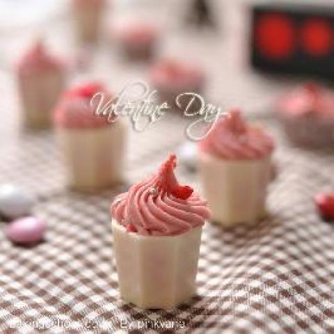 10.在每个巧克力烛台中顺时针旋转挤上花,做点点缀。