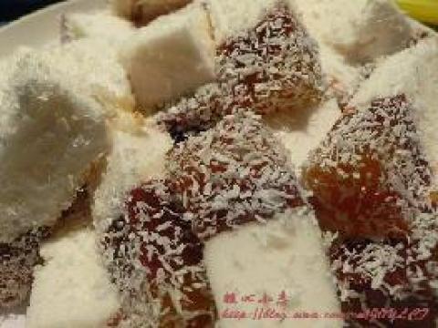 3.拿出来后切件,喜欢的话再裹上椰子粉就大功告成了,大家快开吃吧!