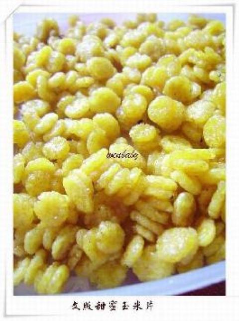 1、锅内放少许冷水,放糖,炒出糖色后,放玉米片进去~翻炒均匀后盛出;