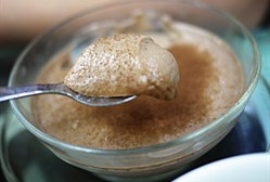 2.将作法1过滤去除结块的蛋白,再加入巧克力酱拌匀。