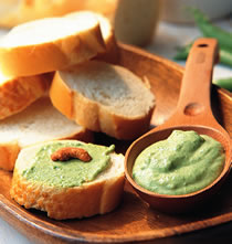 4.将现调好的沙拉酱,趁新鲜涂抹在法国面包或土司上,并搭配蜜汁腰果或玉米脆片享用。