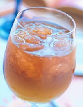 1. 将仙草茶与冰块放入果汁机中搅打成冰沙(也可将仙草茶结成冰块后打成冰沙),倒入果汁杯中约七分满。