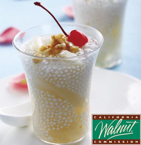 第三种:甜品菜谱加州核桃蜜桃酒西米露做法