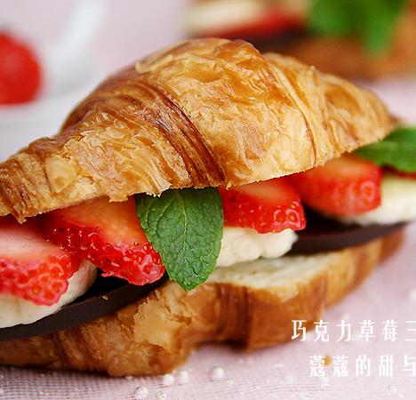 第一种:甜品菜谱巧克力草莓三明治做法