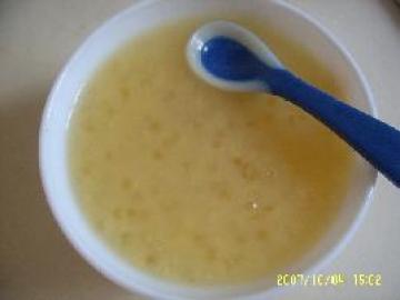3)再次沸腾后转小火煮15min(此时绿豆已经爆开),加入备好的西米,选择性加入适量冰糖,边煮边搅5min左右,完毕!