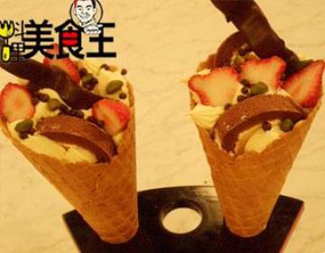 (1)准备一个冰镇过的高脚杯,先挖取1杓冰淇淋填入杯子底部。