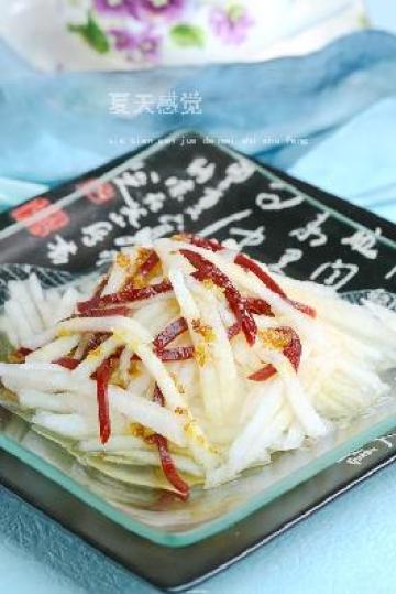 1、梨削皮切细条;