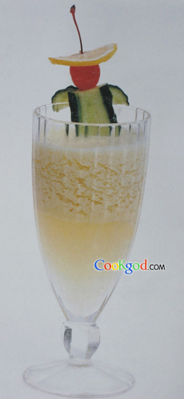 配方:鲜牛奶4盎司,柳橙汁1盎司,百香果汁1又1/3盎司,龙眼蜜1盎司,奶精粉1平匙,香草粉1平匙,冰块1杯
