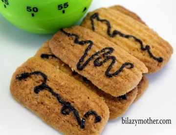3. 把已经溶解的巧克力用花袋,或用干净的塑胶袋,底部一角剪个小孔,挤出条纹或自由发挥的图