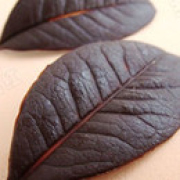 4。用软刷子,沾点巧克力,轻轻均匀的涂抹在树叶上,记着是树叶的背面,因为背面的纹路更清晰,做出来的巧克力树叶是反的,涂抹叶子背面正好是正面效果。如果感觉涂抹得太薄,等巧克力稍微干后可以再涂抹一次