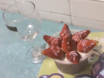 8.将一个草莓(整的)放在中间,其他的切成2瓣摆在旁边,将20ml牛奶淋在草莓上