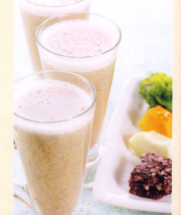 1:水果适量,依个人喜好。(也可以用果汁。一大杯) 2:香草冰淇淋3大匙。 3:牛奶一大杯。4.搅拌机。