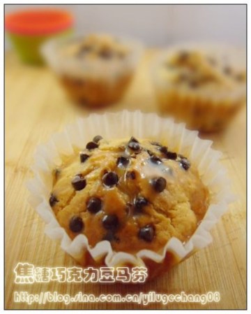 第一种:甜品菜谱焦糖巧克力豆马芬做法
