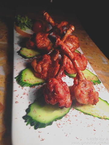 鸡中翅一端切口,剔除细的骨头,将鸡肉与粗的骨头分离,注意,尾部位置要留住,将鸡翅肉翻转过来,加入老抽,白砂糖,淀粉,黑胡椒粉,迷迭香,精盐,料酒,腌制30分钟,下锅炸制金黄,装盘后,撒上巧克力碎